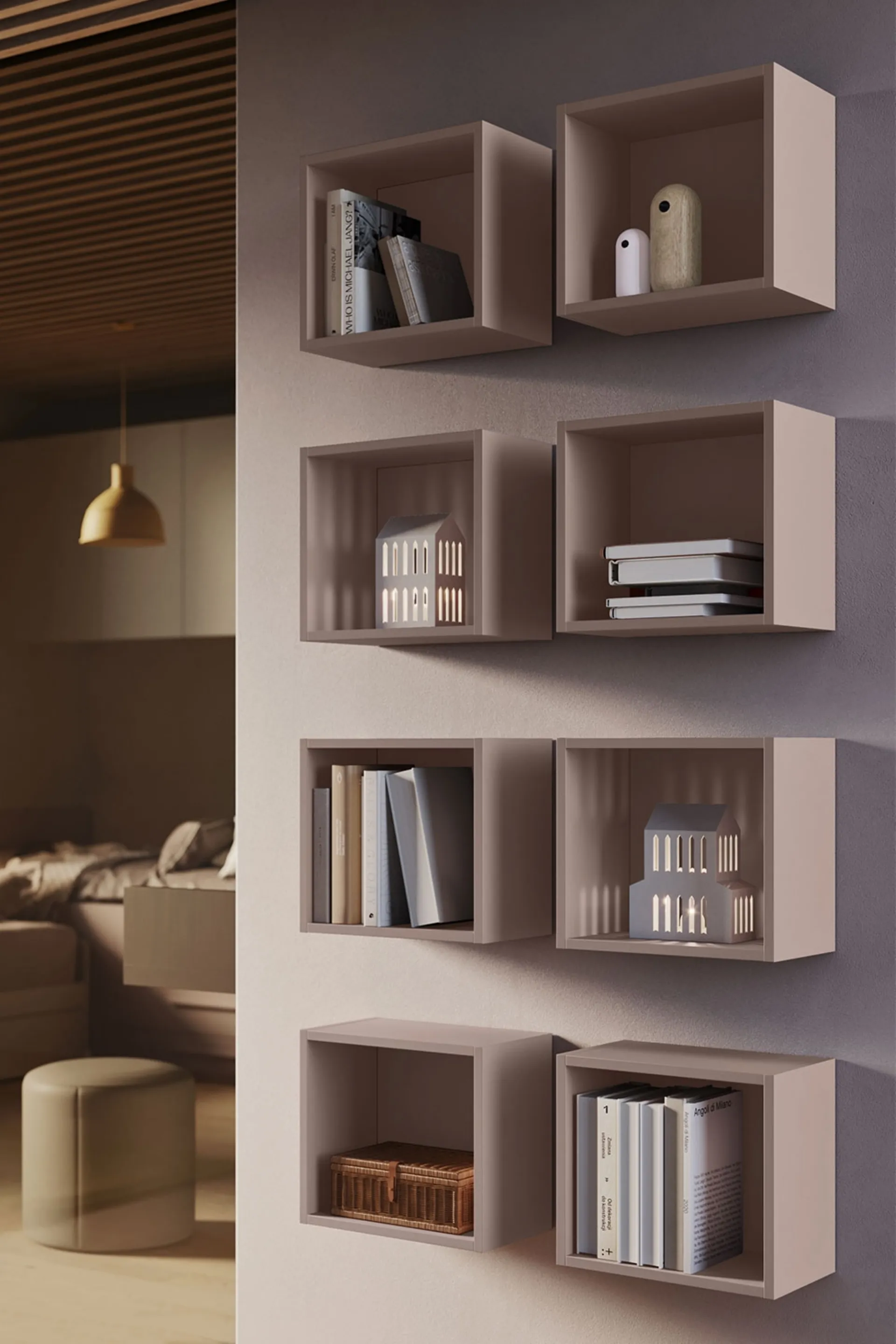 Le composizioni di charme del marchio Clever valorizzano gli interni con i loro colori e gusto, ricreando particolari atmosfere arredative. Mensola a cubo Case di Clever in laccato: conferirà carattere e charme a un locale arredato con mobili e complementi dai richiami moderni. Altamente versatili e plurifunzionali, i Complementi moderni in laccato svolgono funzioni diversificate: ultimano le doti di funzionalità e il valore estetico dell'ambiente. Nel nostro punto vendita potrai vedere dal vivo l'eccellenza dei modelli di mensole moderni in laccato del marchio, proprio come questa soluzione in foto. Complementi e mensole completano l'arredo di casa, occupando lo spazio in maniera utile e rendendolo accogliente e bello a vedersi.