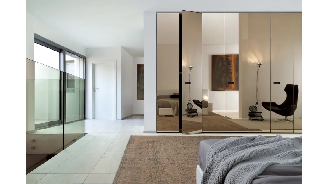 Se sei alla ricerca di armadiature su misura con ante battenti, clicca e scopri l'armadio Battente Mix Specchio di Fimes in vetro.