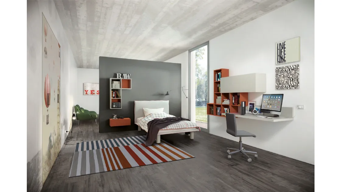 Arreda stanzette moderne con le Camerette componibili Tumidei! Il modello Comp 341 in laccato opaco è per ragazzi.