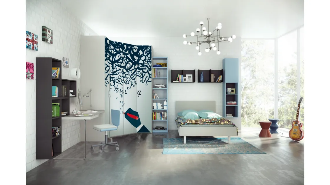 Camerette componibili per ragazzi: scopri il modello in laccato opaco Comp 349 di Tumidei per stanzette moderne.