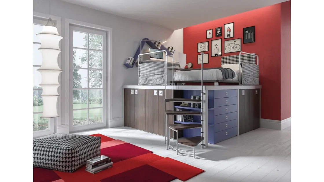 Con questa cameretta Comp 304 Tumidei, tra le soluzioni a soppalco, potrai progettare stanze moderne per ragazzi.
