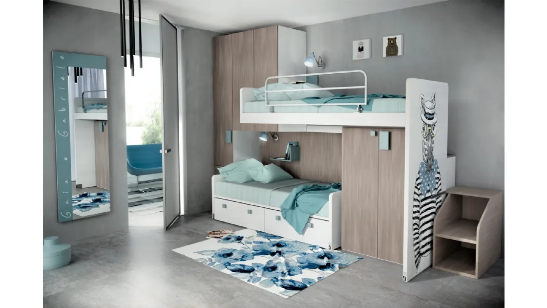 Con questa cameretta Comp 355 Tumidei, tra le soluzioni a soppalco, potrai progettare stanze moderne per bambine.