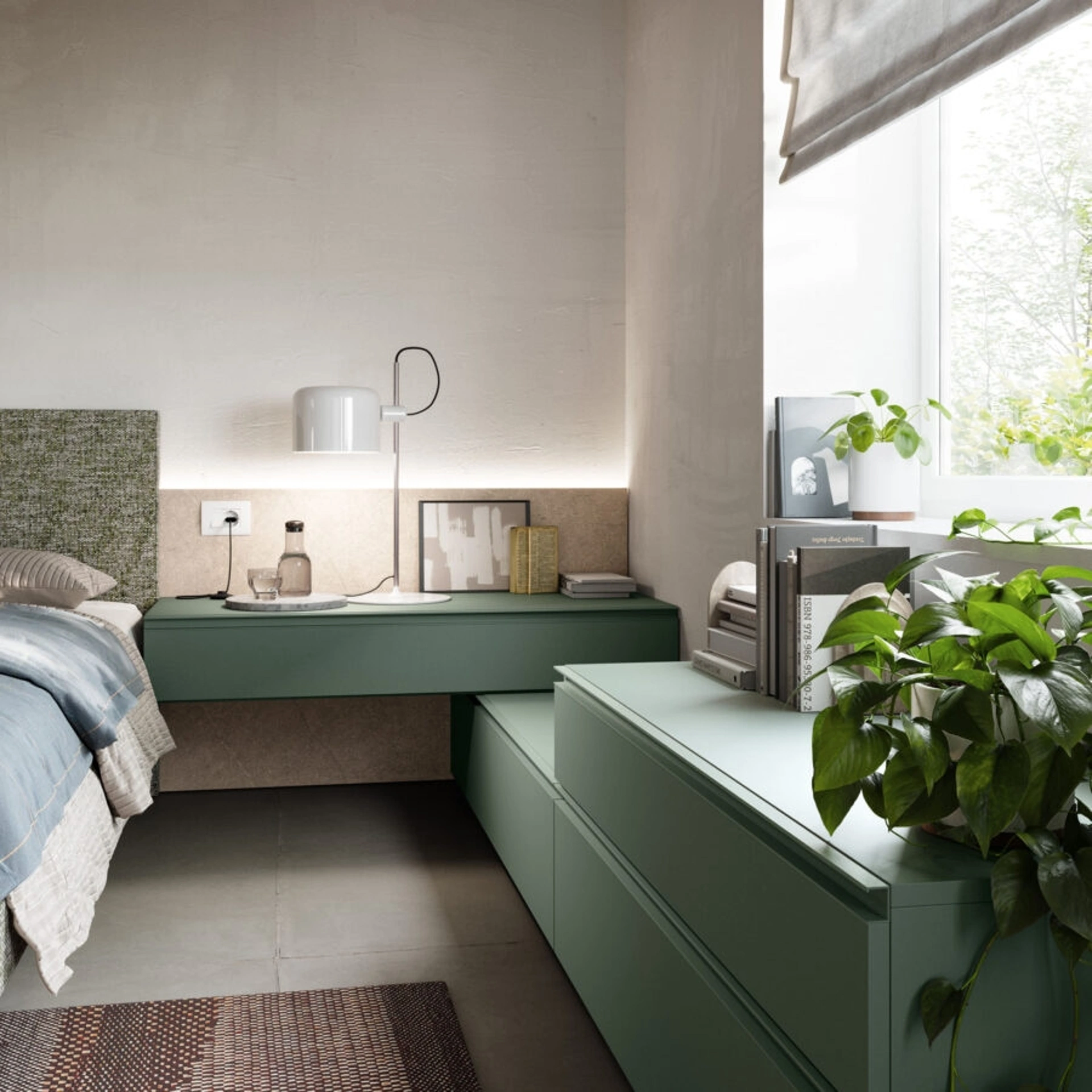 Una ricca gamma di mobili con cassetti Orme: i comodini moderni in melaminico, come Gruppo Notte Bravo, sono tra le proposte più esclusive.