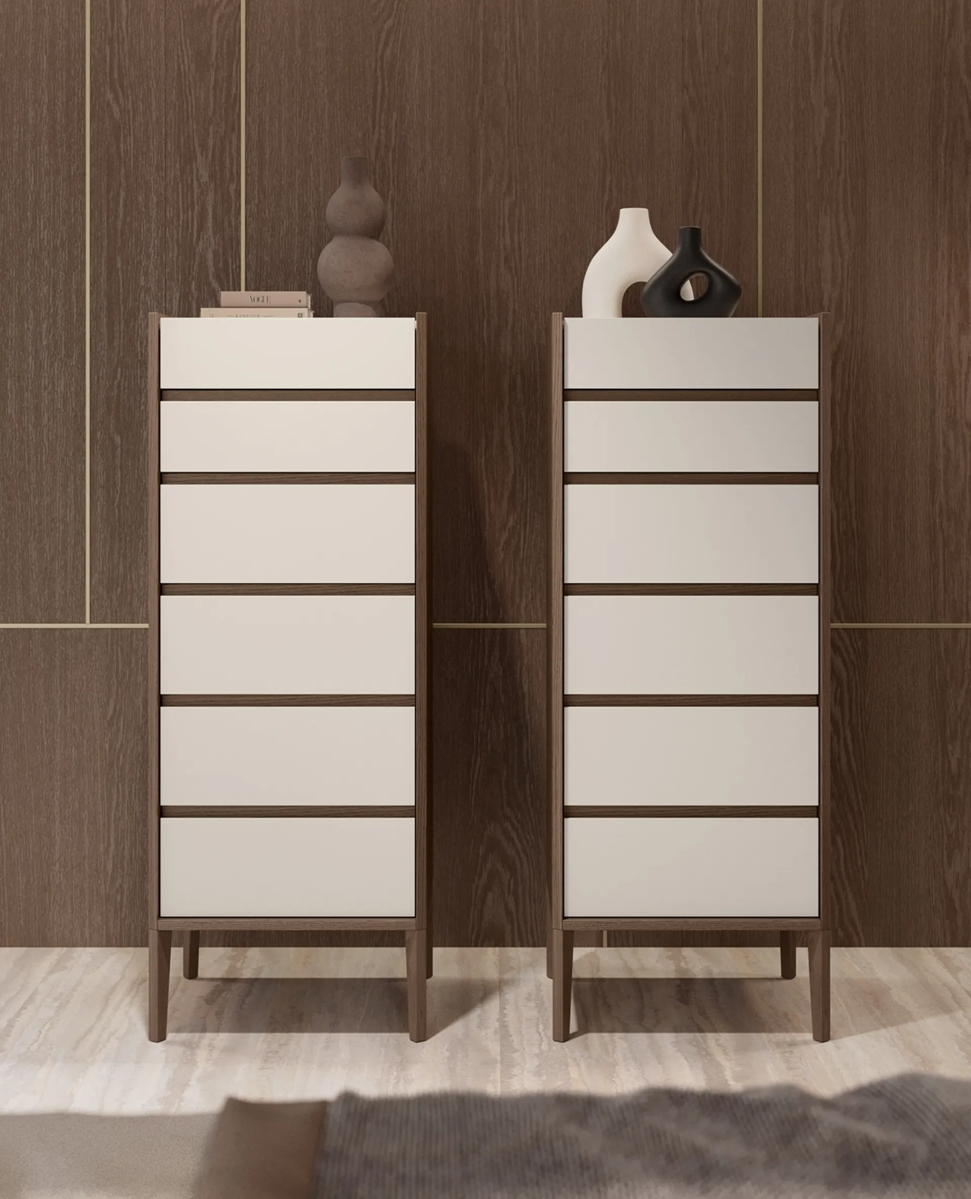 Una ricca gamma di mobili con cassetti Olivieri: i comodini moderni in laccato opaco, come Andrea Cassettiera, sono tra le proposte più originali.