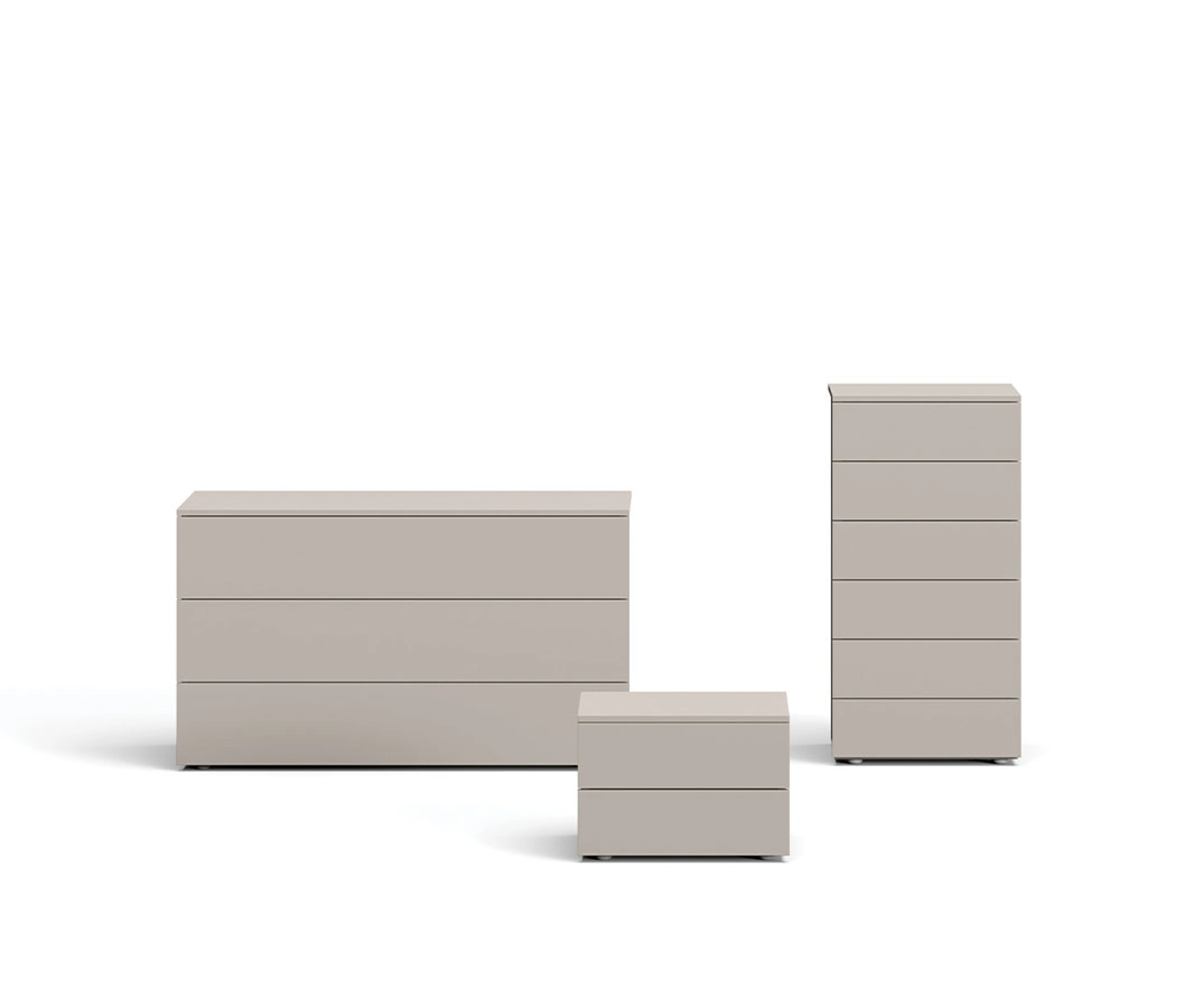Vuoi ammobiliare la camera da letto con Comodini e cassettiere di Orme? Ecco qui il modello Gruppo Notte Wind in melaminico per spazi moderni.