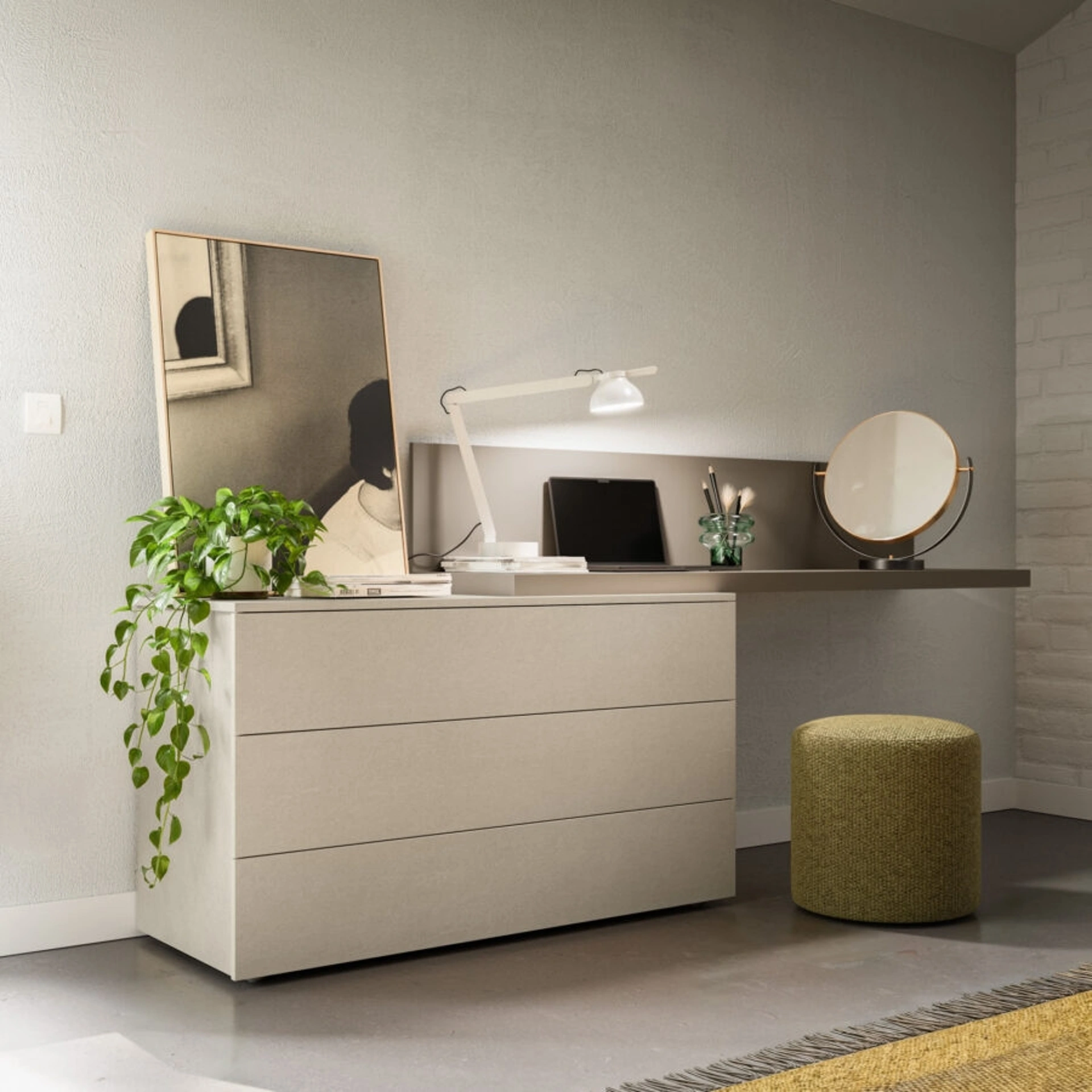 Materiali di prima scelta e lavorazioni eccellenti per il Gruppo Notte Wind di Orme in in melaminico, disponibile in negozio con le altre varie idee del brand, per fare della camera da letto uno spazio che rifletta i tuoi gusti. Ti chiedi in che modo abbinare letti, armadi e comò? Con il modello di Orme visibile in foto avrai un mobile pensato per un luogo dai richiami moderni.