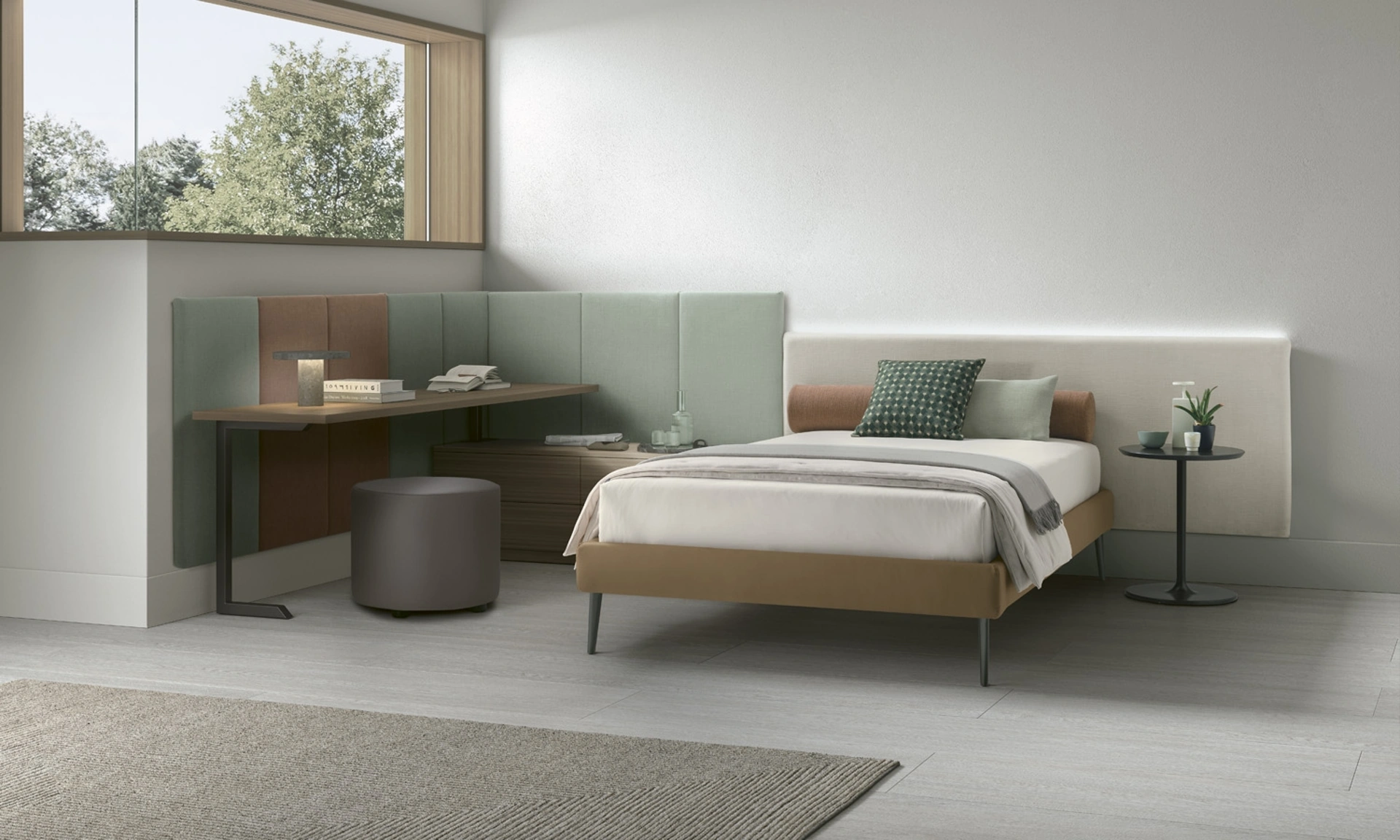 Il letto singolo Boiserie in tessuto in foto, tra i modelli imbottiti moderni di V&Nice, è pensato per garantire il riposo migliore.
