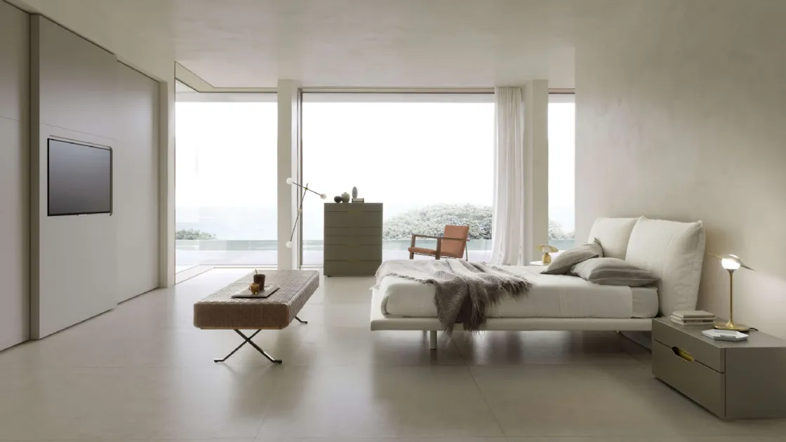 Se desideri letti matrimoniali imbottiti, ecco qui il modello Fez in tessuto per valorizzare la zona notte.