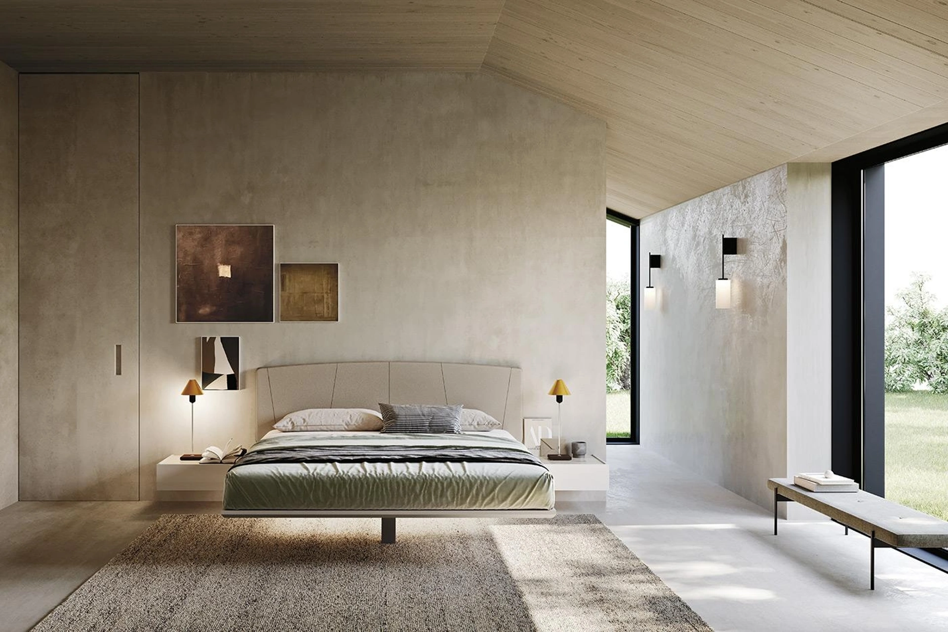 Vuoi progettare la camera da letto? Ti presentiamo il letto in tessuto Sospeso N16 di Mobilgam per spazi design.