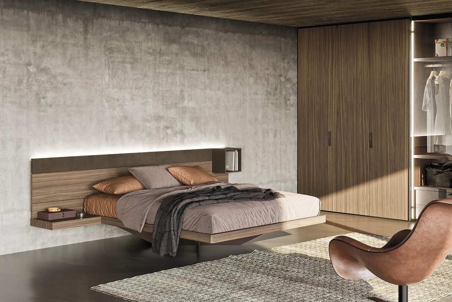 Vuoi progettare la zona notte? Ecco qui il letto in legno Wall System N06 di Mobilgam per spazi design.