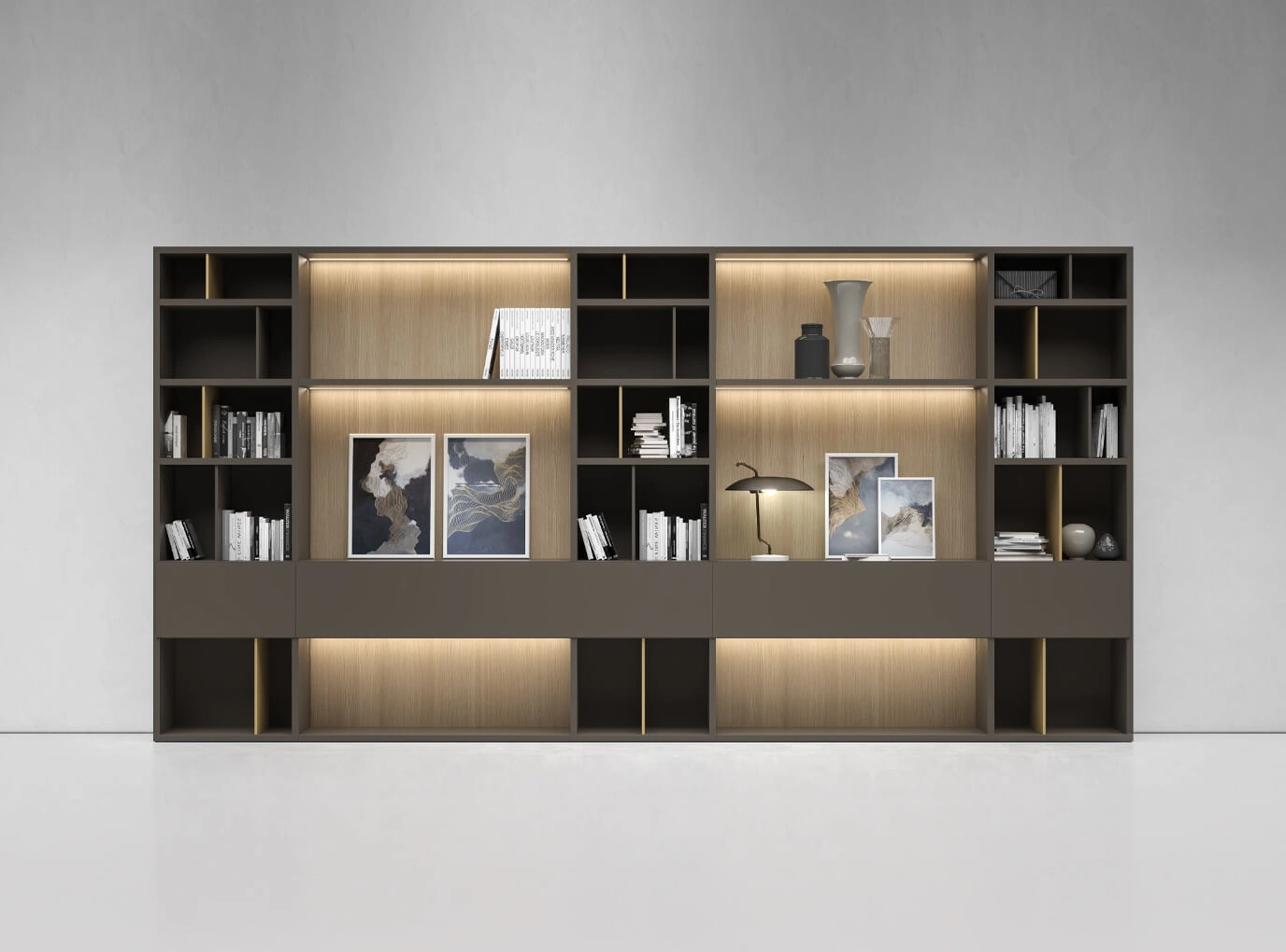 Librerie a muro super funzionali per stanze moderne: ottieni informazioni sul modello Pari & Dispari A del marchio Presotto!