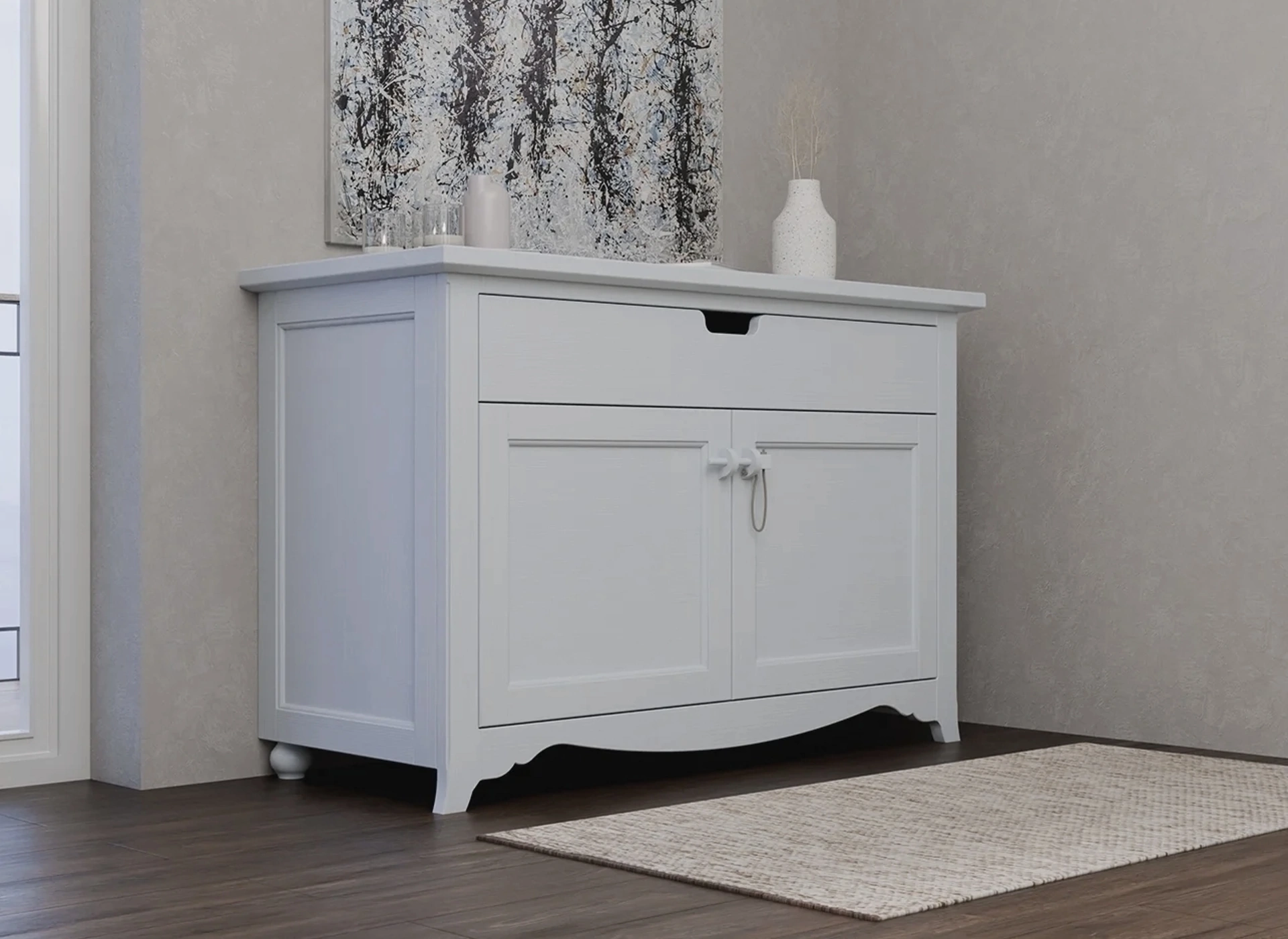 Arreda un soggiorno operativo e pratico con questa madia Tabià a 2 ante di Scandola: scopri le più belle Madie in legno laccato.