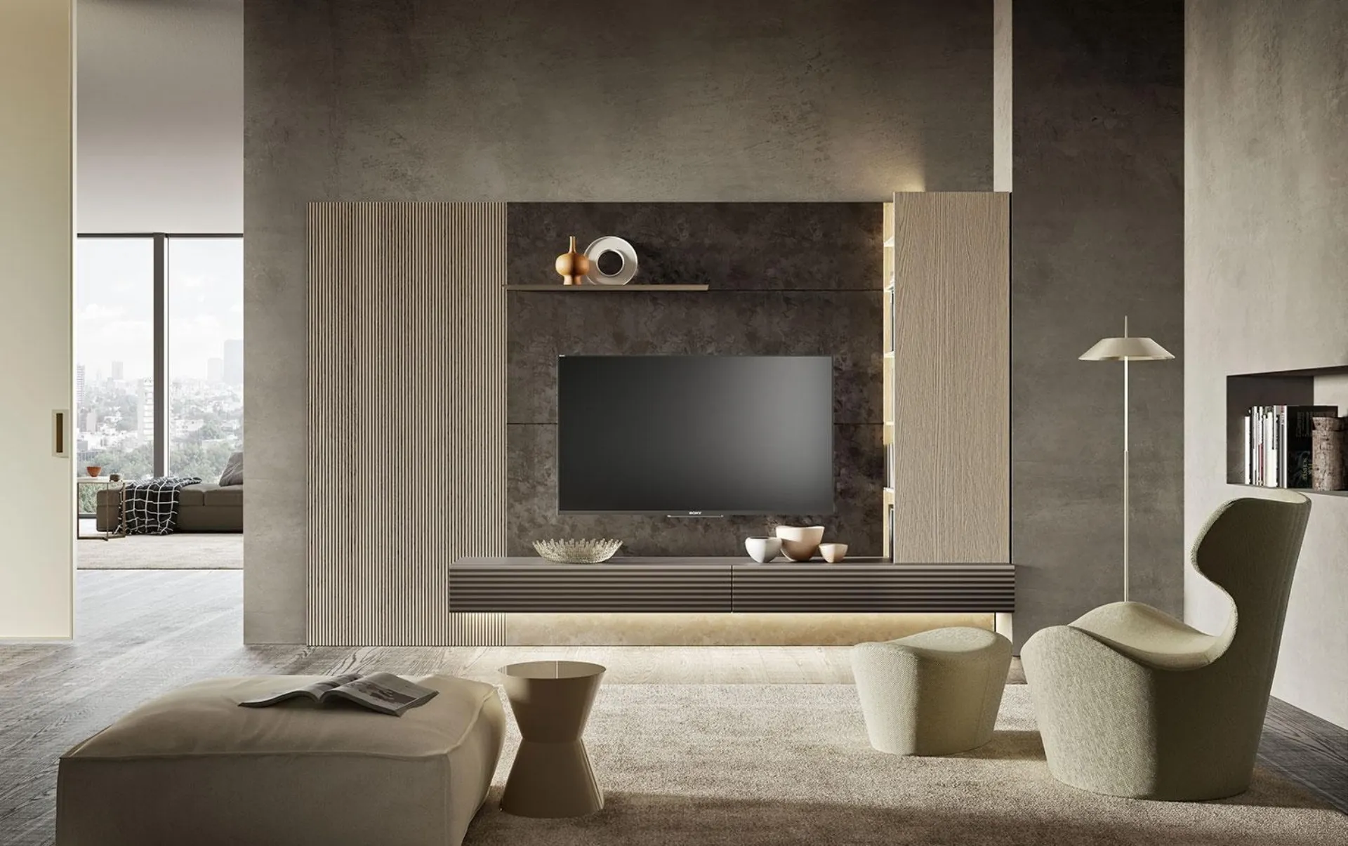 Attraverso un gioco dinamico di accostamenti fra elementi a giorno o vani chiusi, le Pareti Attrezzate moderne arredano il soggiorno valorizzando ogni spazio. Le Pareti Attrezzate hanno assunto un posto fondamentale nella zona giorno delle nostre case: sono arredi plurifunzionali e salvaspazio sempre realizzabili su misura per te. Per informazioni e preventivi sulla Parete Attrezzata Composizione Horizon 1004 di Mobilgam in foto contattaci! Il modello proposto è realizzato in legno, ma grazie ad una grande varietà di finiture, tonalità e forme, potrà adattarsi a stili di ogni genere. Questa parete attrezzata è una delle soluzioni del marchio e ti consentirà di ammobiliare il soggiorno seguendo le più particolari problematiche abitative.