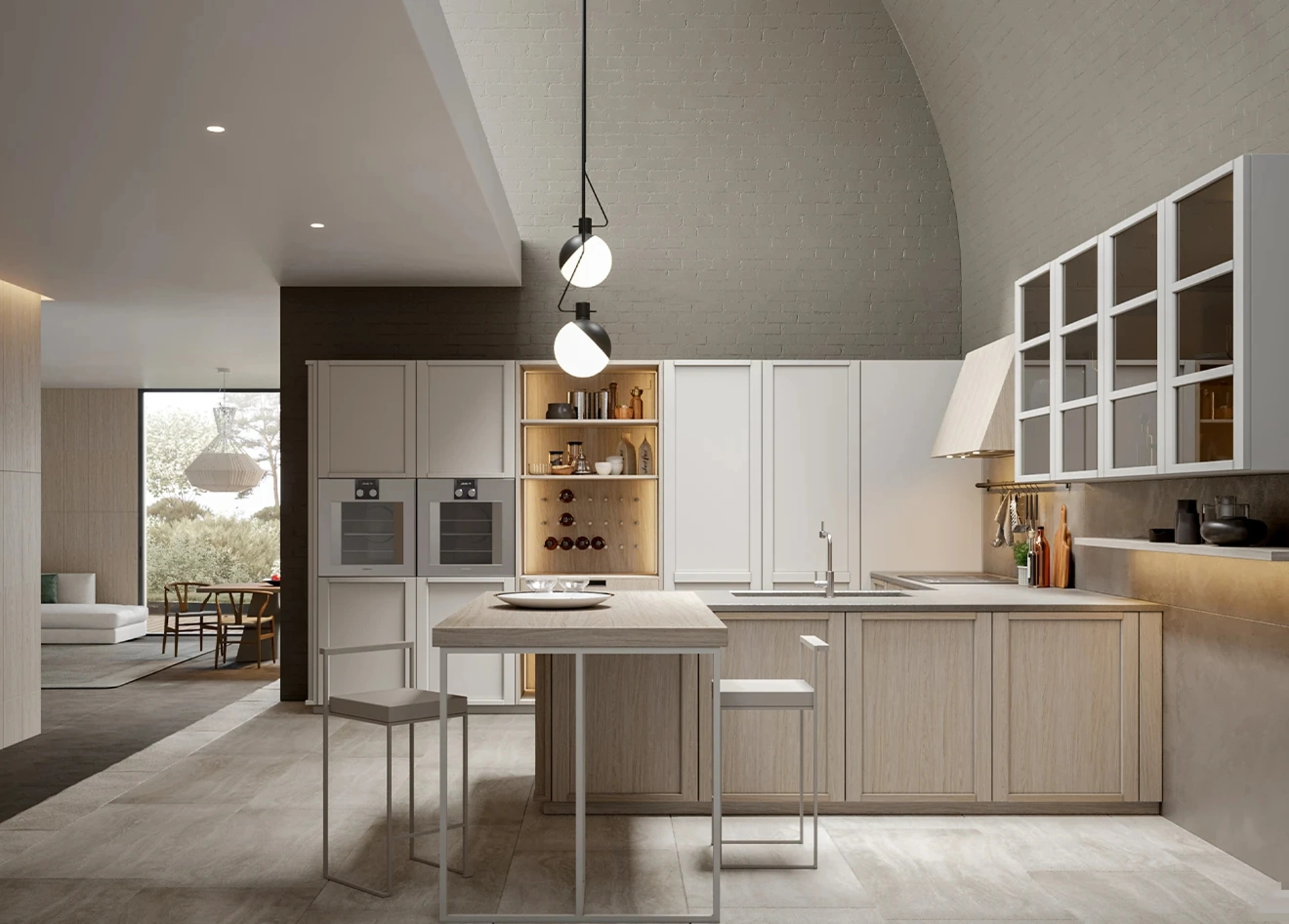 Cucine Moderne con penisola: clicca e scopri una ricca gamma di soluzioni dell'azienda Scandola, tra cui il modello E06 Eclettica Optima 13.